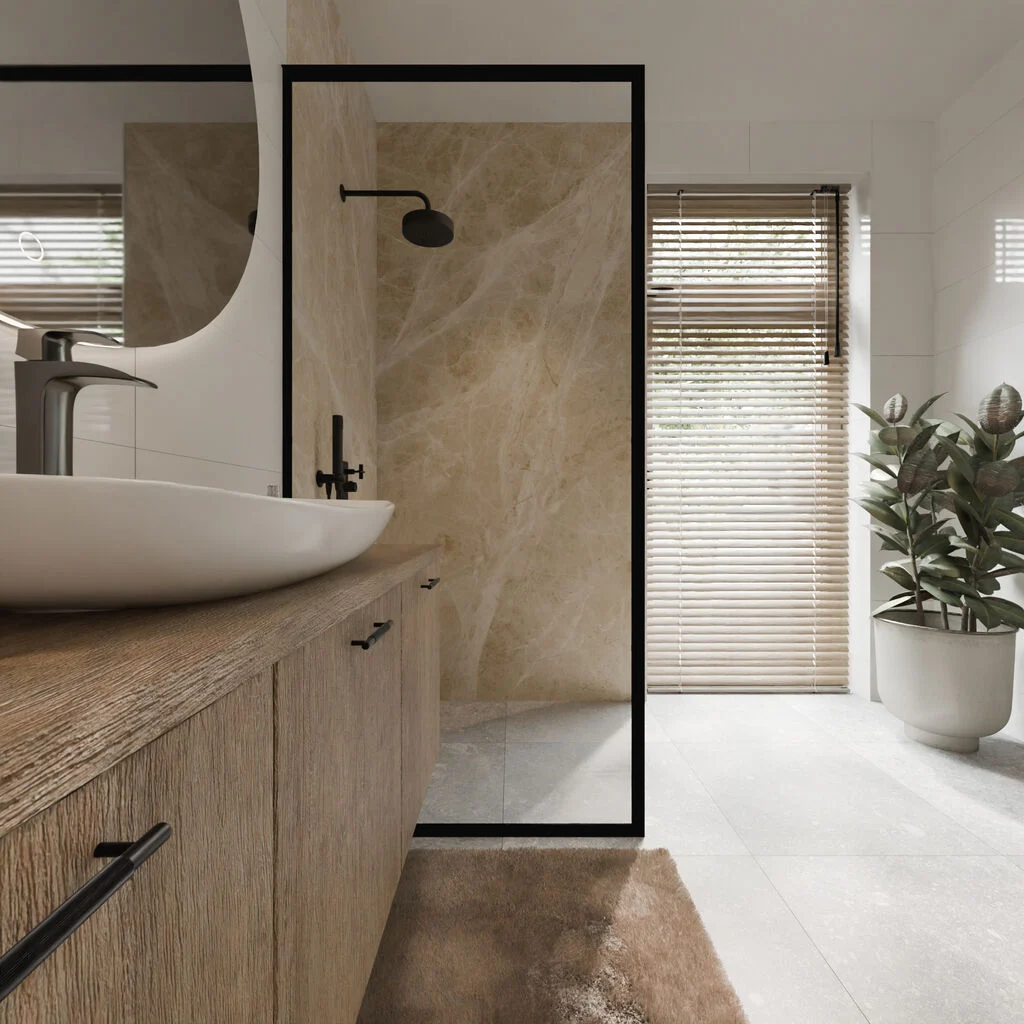 Nos panneaux muraux en marbre crème mat apportent une allure élégante et sophistiquée à votre cuisine, votre salle de bains ou vos toilettes. Ce panneau en Alupanel se distingue par sa durabilité et sa facilité d’installation. Ce matériau robuste et léger (composé de fines couches d’aluminium associées à un noyau en plastique) est entièrement imperméable. Idéal pour les pièces humides comme la douche, il offre une protection efficace contre l’humidité. Sa finition mate apporte une touche d’élégance à votre intérieur, et son installation est jusqu’à trois fois plus rapide que celle du carrelage traditionnel.